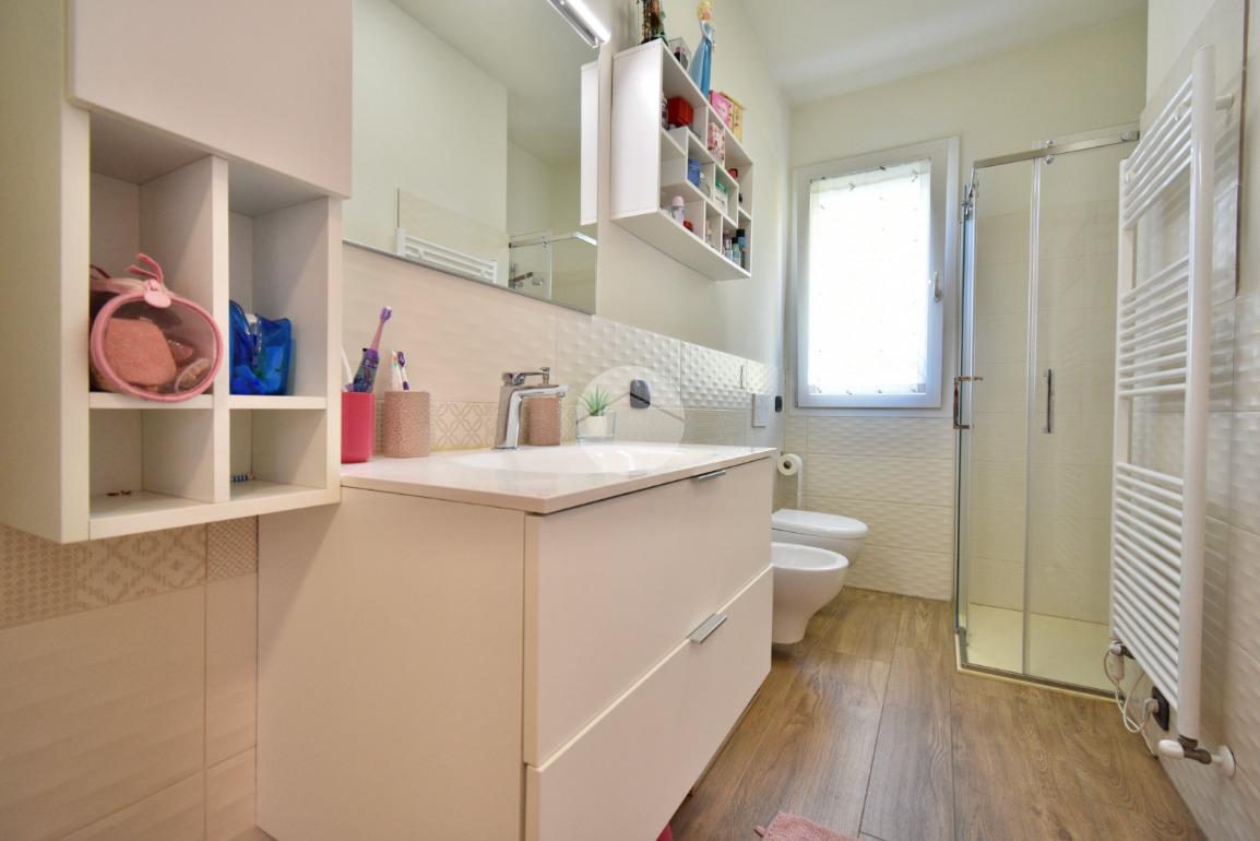 La zona notte, ben disimpegnata, ospita due spaziose camere matrimoniali, di cui una di 14 mq ed una di 18 mq e due bagni finestrati, entrambi completi di box doccia e finiture recenti.
