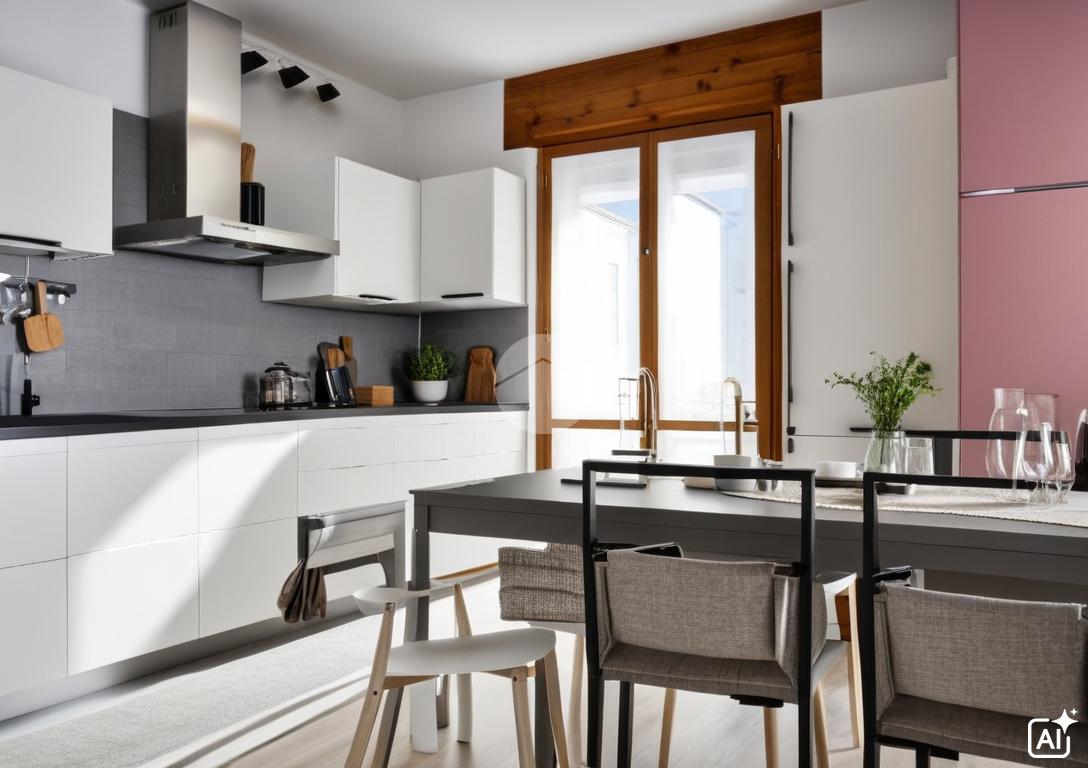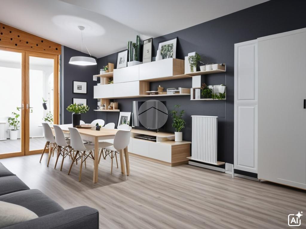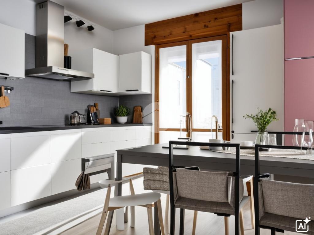 L'immobile proposto ci accoglie in un ampio soggiorno con camino in bioetanolo, creando un'atmosfera accogliente, per poi proseguire nella cucina separata. I due ambienti offrono due balconi, ottimi sfoghi esterni che donano luminosità.