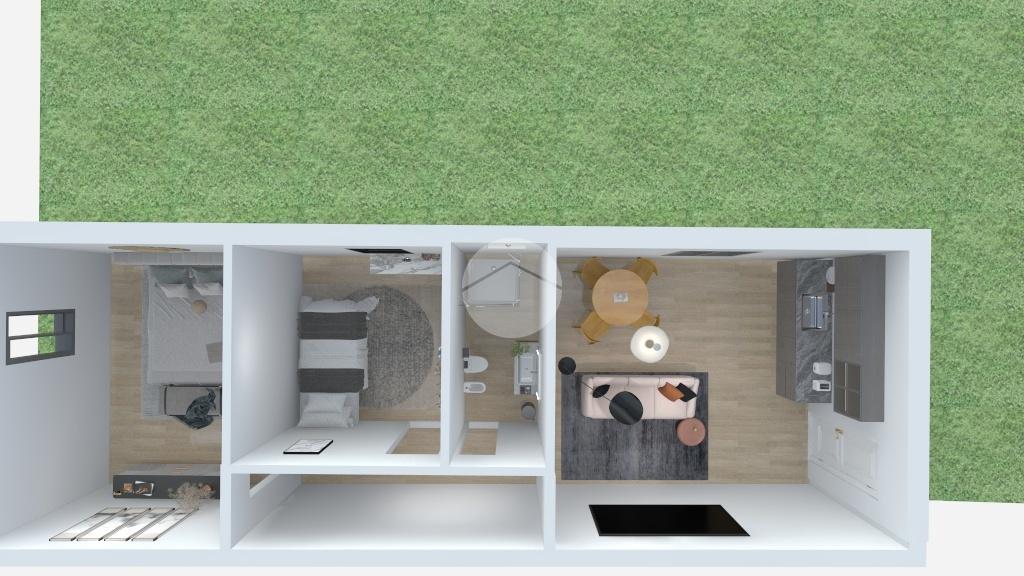 L’ingresso dell’appartamento si apre al piano terra su un luminoso soggiorno con angolo cottura di circa 21 mq, seguito da due camere da letto, di cui una matrimoniale di 14 mq e una singola di 9 mq, oltre a un bagno finestrato.