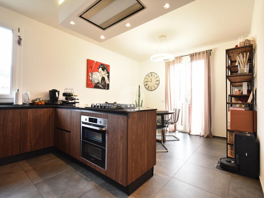 L’immobile si presenta in ottimo stato, con rifiniture moderne e curate ed è dotato di tecnologie orientate al risparmio energetico e al comfort abitativo, tra cui pannelli solari, cappotto termico, riscaldamento a pavimento, infissi in pvc in doppio vetro, portone blindato, sistema di ventilazione meccanica controllata (VMC), zanzariere in ogni finestra, antifurto e basculante motorizzata.