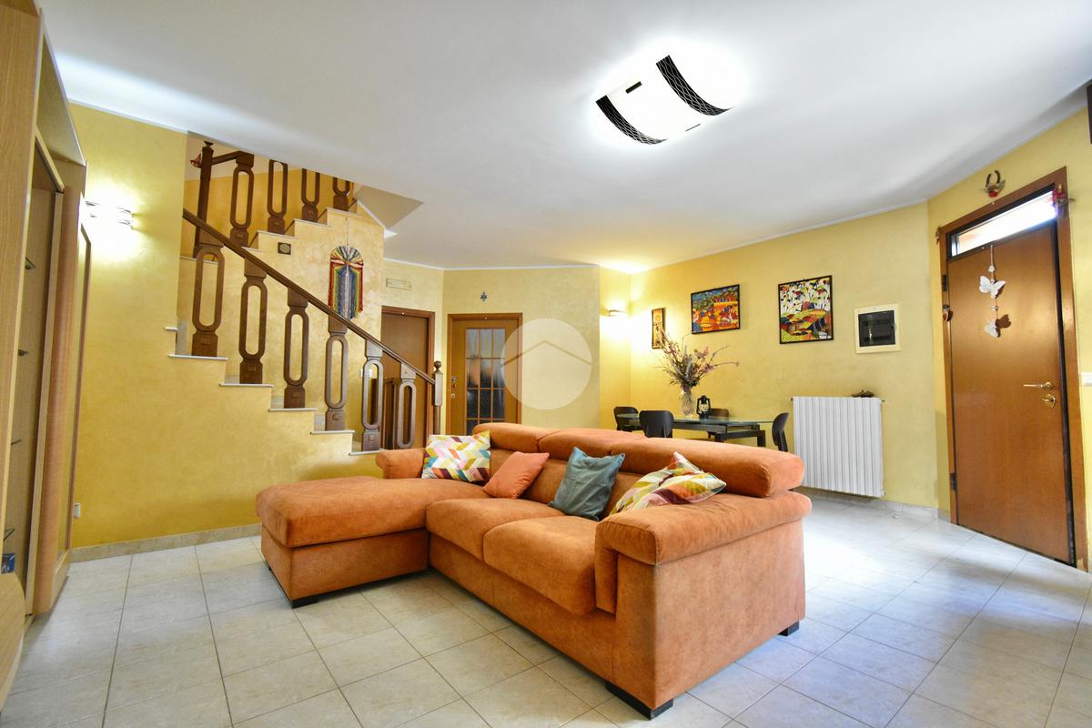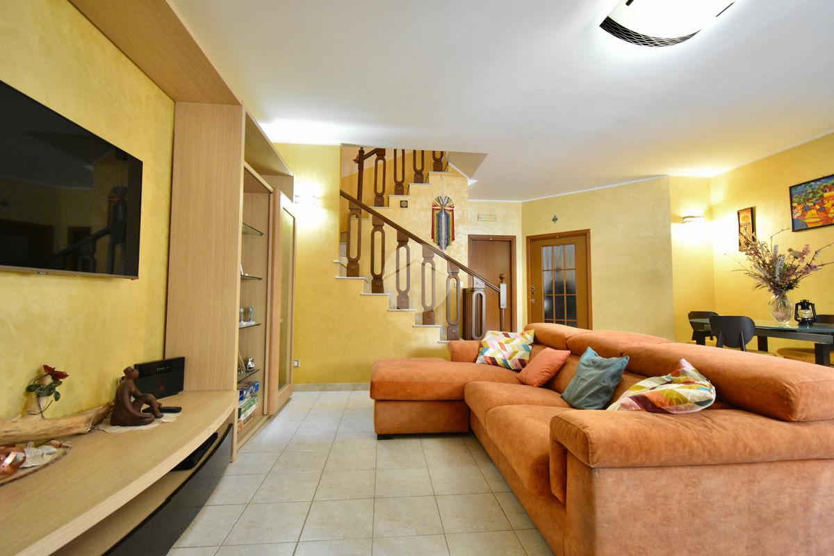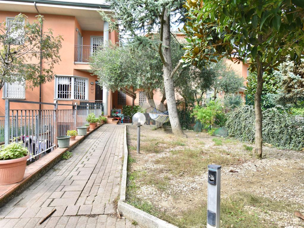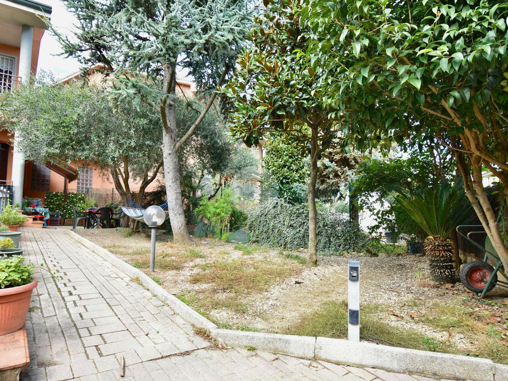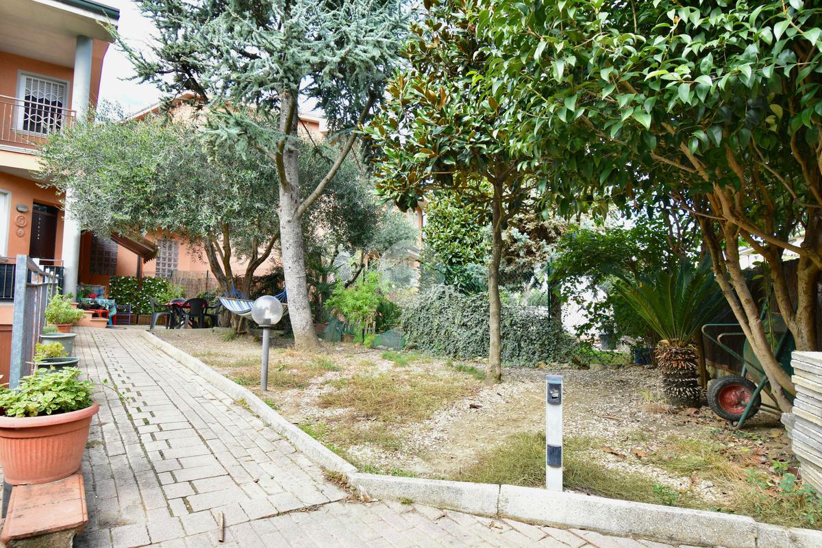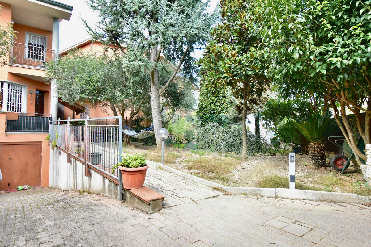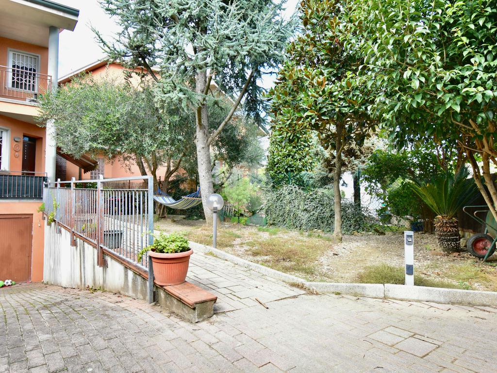 L'entrata dell'unità immobiliare, tramite un accesso pedonale e tramite un passo carrabile, ci accoglie in un gradevole giardino di circa 160 mq, arricchito con un comodo gazebo in legno ed una rampa che conduce al garage al piano interrato: ottimo sfogo per condividere attività all'aperto in compagnia di amici, familiari ed animali.