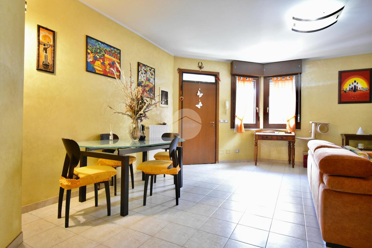 SANTARCANGELO, zona Villaggio Flora: a pochi minuti da Piazza Ganganelli e da tutti i principali servizi, villa a schiera dalle ampie metrature disposta su tre livelli con ingresso indipendente e giardino di proprietà.