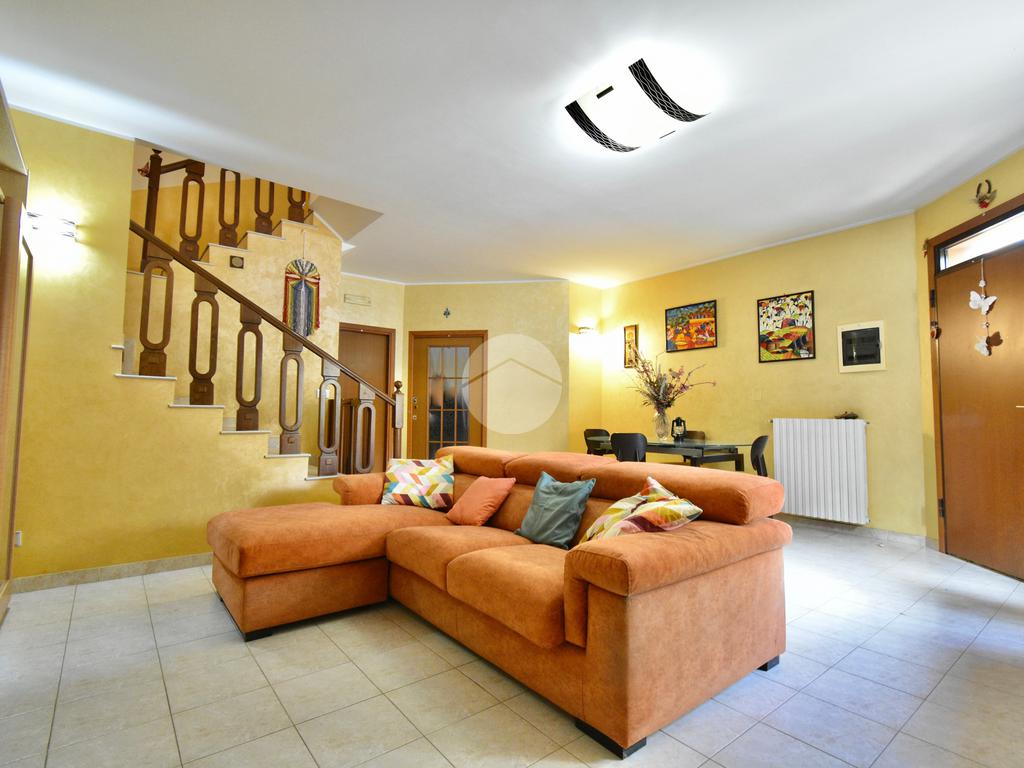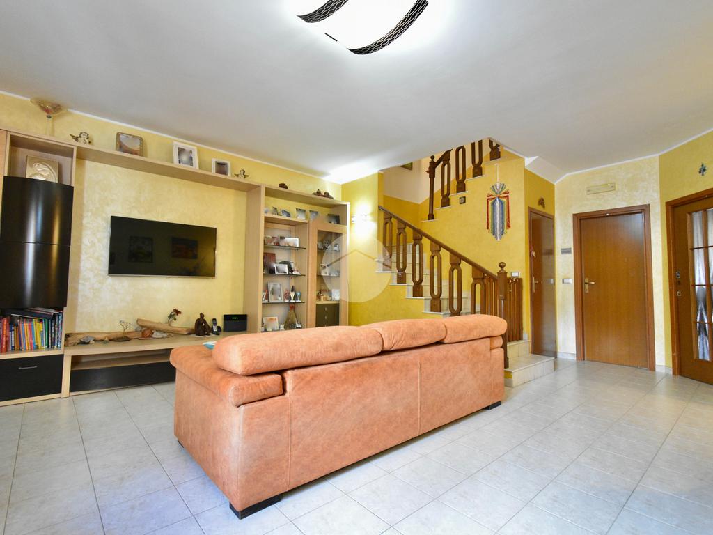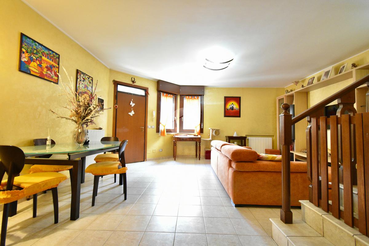 A valorizzare lo sfogo esterno è un vialetto pavimentato che ci accompagna al piano rialzato. Il piano ospita un luminoso soggiorno di circa 30 mq ed una cucina abitabile separata di circa 15 mq. L'ambiente della cucina presenta una porta finestra che permette di accedere al giardino retrostante. Completano il piano un bagno finestrato ed uno studio di circa 9 mq che può essere utilizzato come ufficio o stanza per hobby.