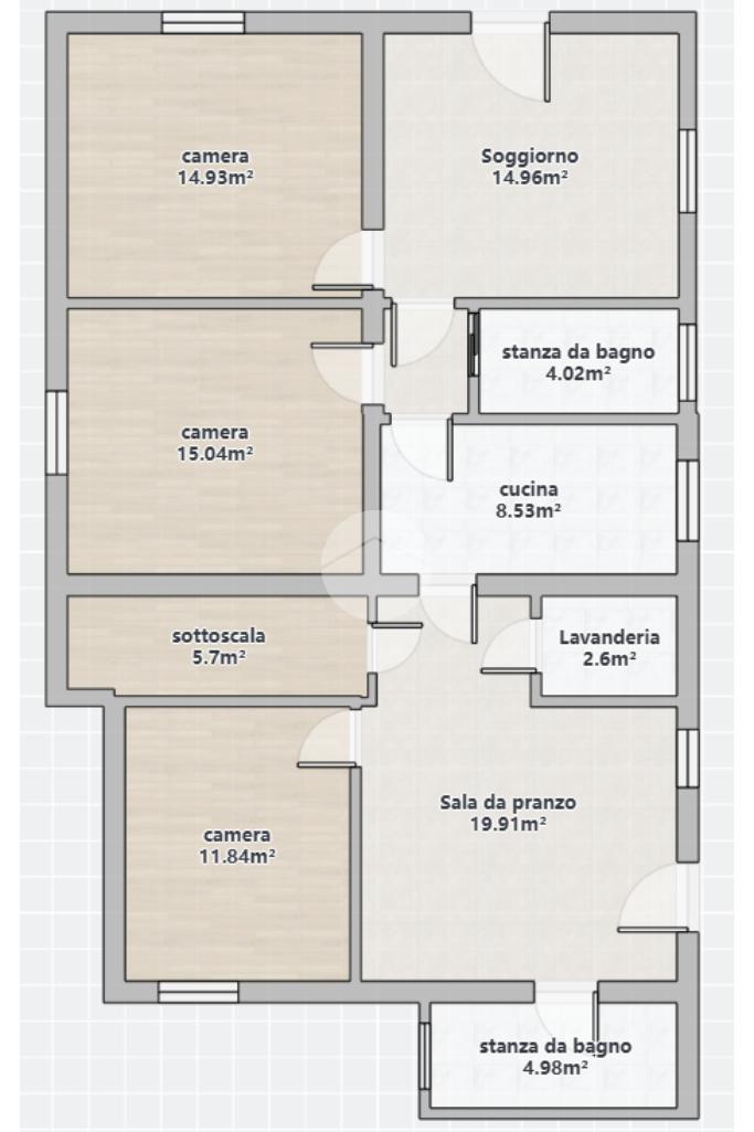 Il piano terra si conlude con due ripostigli, di cui uno adibito a lavanderia.