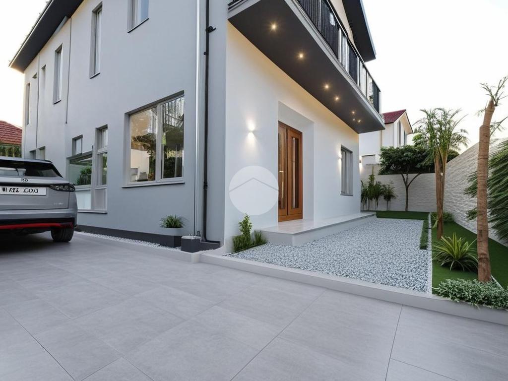 Esternamente, l'appartamento si completa con il garage di proprietà con il camino.