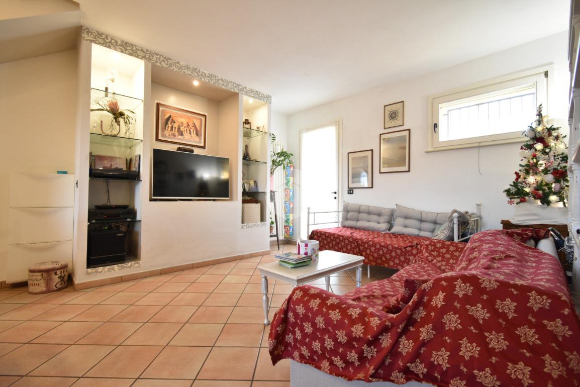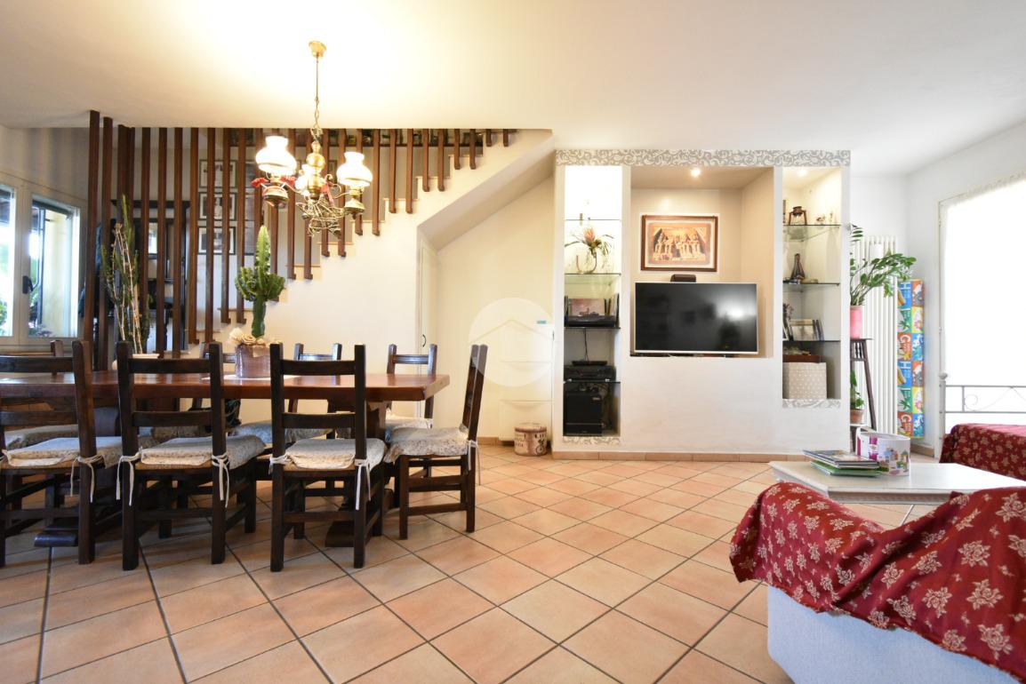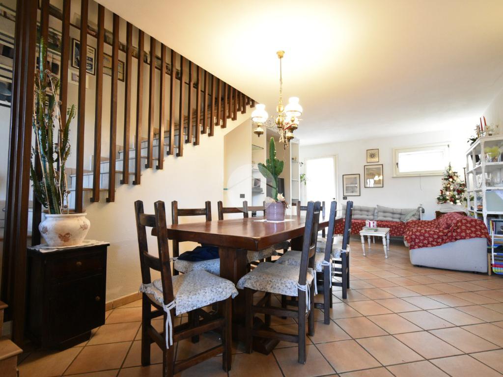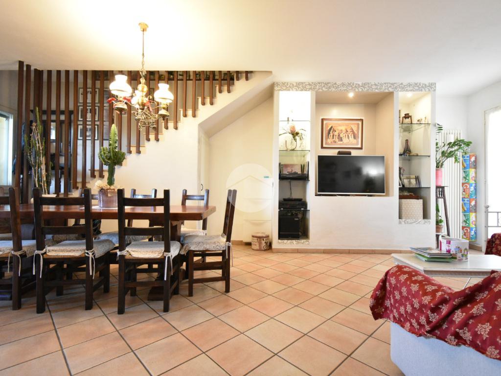 Al piano terra ci accoglie un luminoso soggiorno con sala da pranzo di circa 34 mq, cucina abitabile separata di 13 mq e bagno finestrato con box doccia.